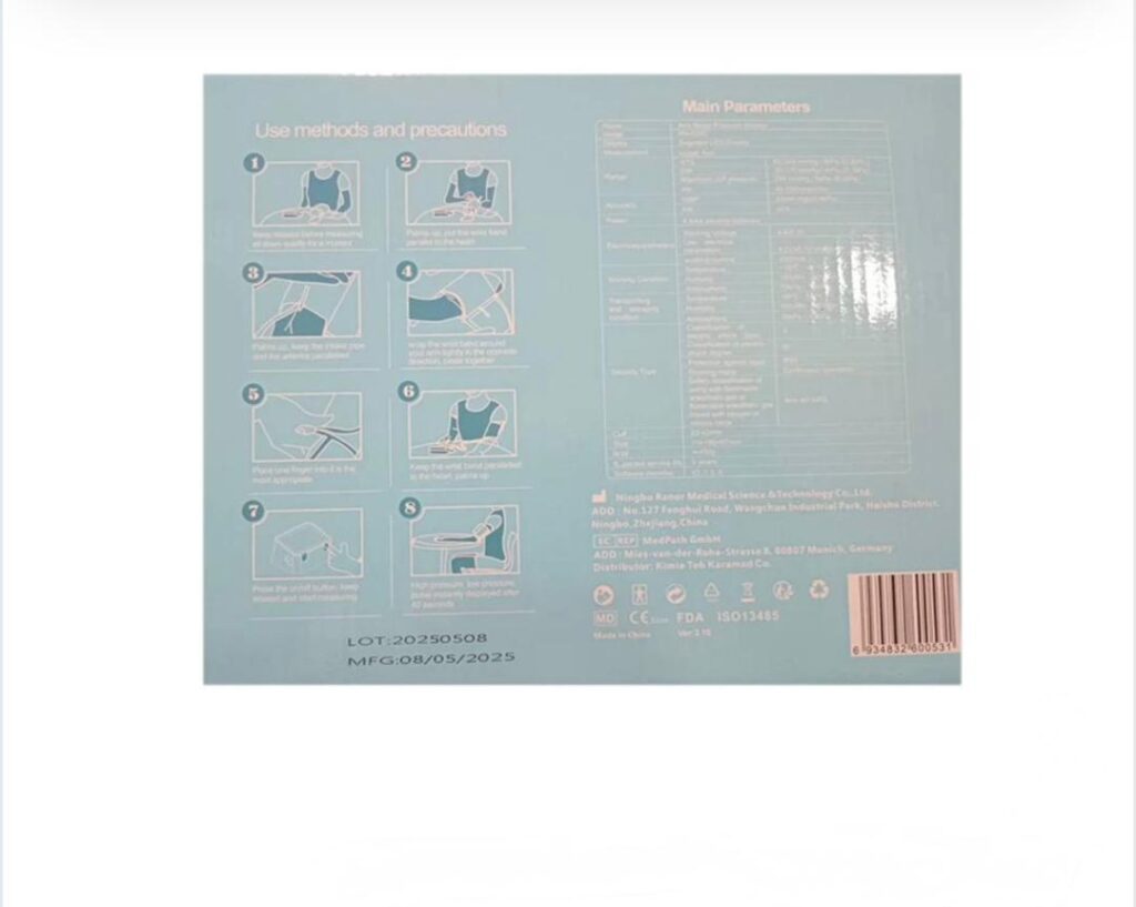 1_نوع دستگاه فشار: فشار سنج دیجیتال بازویی ـ یعنی به بازو بسته میشود نه به دور مچ